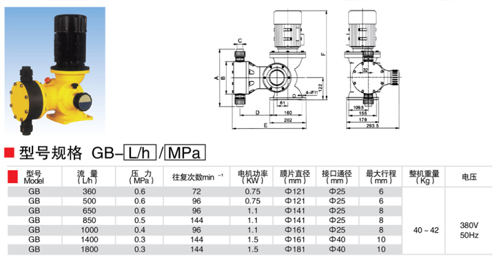 產(chǎn)品名稱:GB型機械隔膜式計量泵